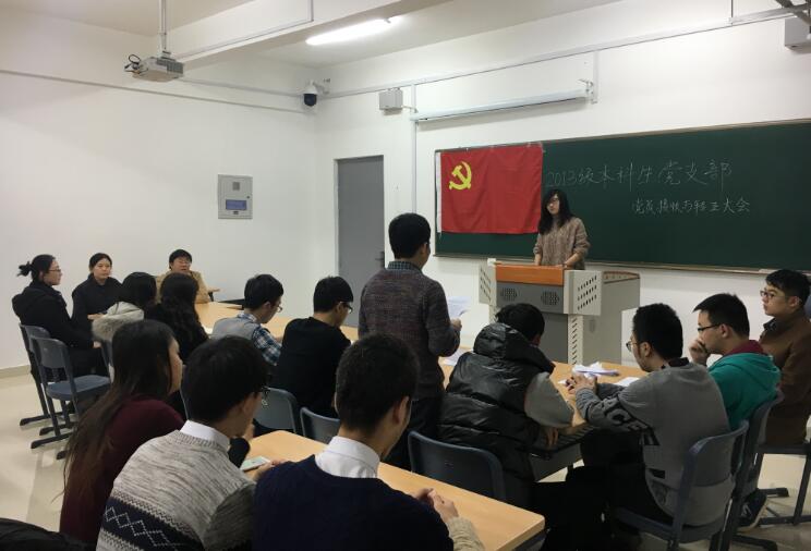 12月7日,学院2013级本科生党支部召开支部大会,讨论接收预备党员胡亚辉、程颖馨同志的转正问题,接收董泽强、高钰轩、陈雨潇同志为中共预备党员的问题。会议由支部书记王玥主持,学院党委书记安立鸿出席会议。