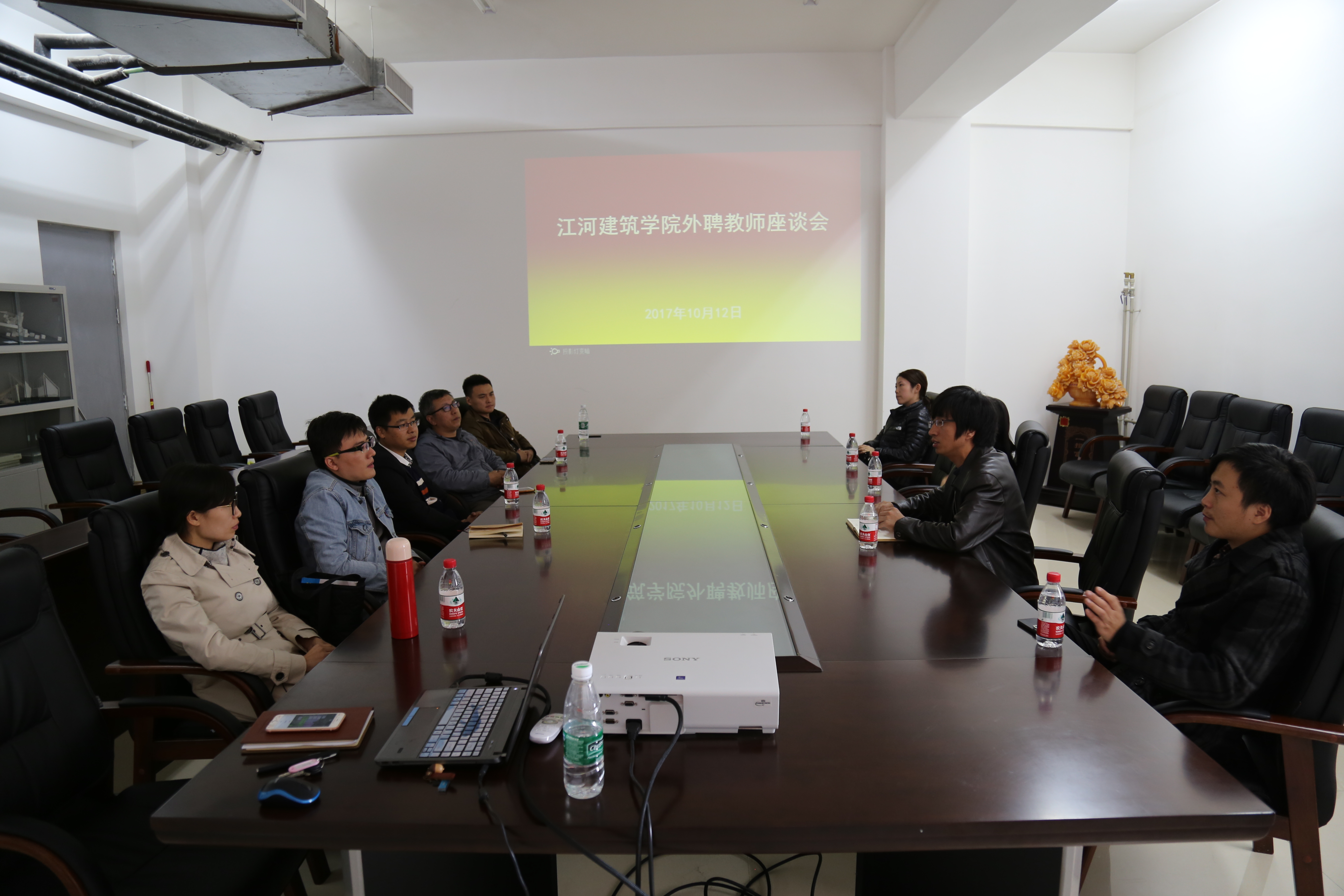 10月12日中午,在浑南校区建筑学馆B621会议室,学院组织召开了外聘教师座谈会,副院长曲艺、建筑系副主任吴德雯、综合办王莹、于晓飞参加了会议。