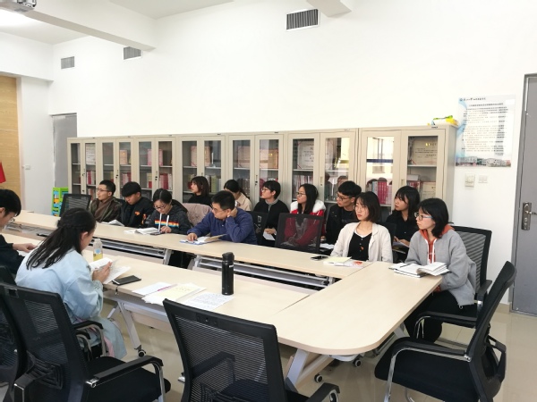 10月21日下午,学院本科生党支部开展“不忘初心、牢记使命”专题读书分享会和“建国70周年”主题弦画活动。全体本科生党员、2019年下半年学生党员发展对象参加活动,活动由党支部书记于昕彤主持。