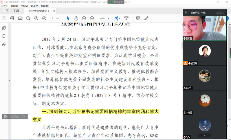 为深入学习贯彻习近平总书记在中国人民大学考察时重要讲话精神和给中国冰雪健儿重要回信精神,近日,学院各党支部组织党员开展线上专题学习。