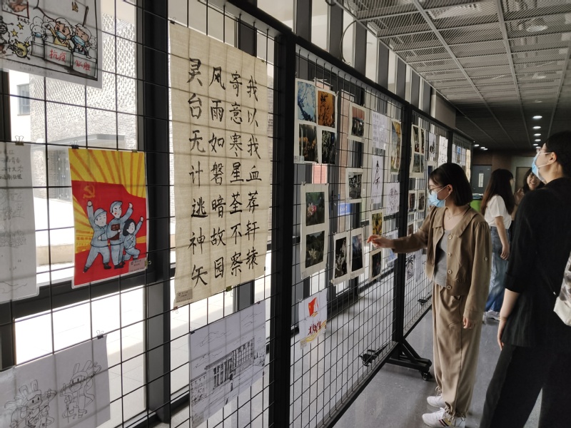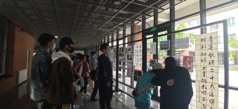 学院党委遴选50幅绘画、书法、新媒体设计和摄影作品在浑南校区建筑学馆A座1楼展出,展览作品立足传承传统文化和新时代精神风貌,饱含作者爱国爱党爱校的真切情怀。学院师生纷纷到现场参观并给予高度赞扬,认为此次展出的师生作品借古开今、兼收并蓄,透过艺术手段将专业特色和新时代精神及文化品格完美融合。