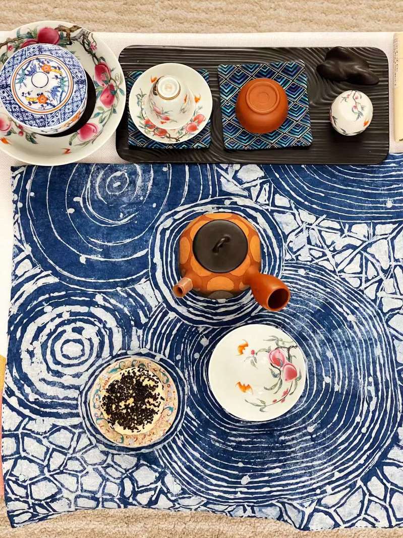 活动在周琴老师对蜡染工艺的讲解中开始,大家开始跃跃欲试,对自己的作品充满了期待。在现场,老师们热情洋溢、兴致勃勃,她们拿出平时做学问的热情,每个人都认真地制作自己的专属作品,尽情体验手工制作的喜悦,通过绘制底稿、以蜡作画、染色固色、脱蜡晾晒,老师们制成了一幅幅生动的作品。