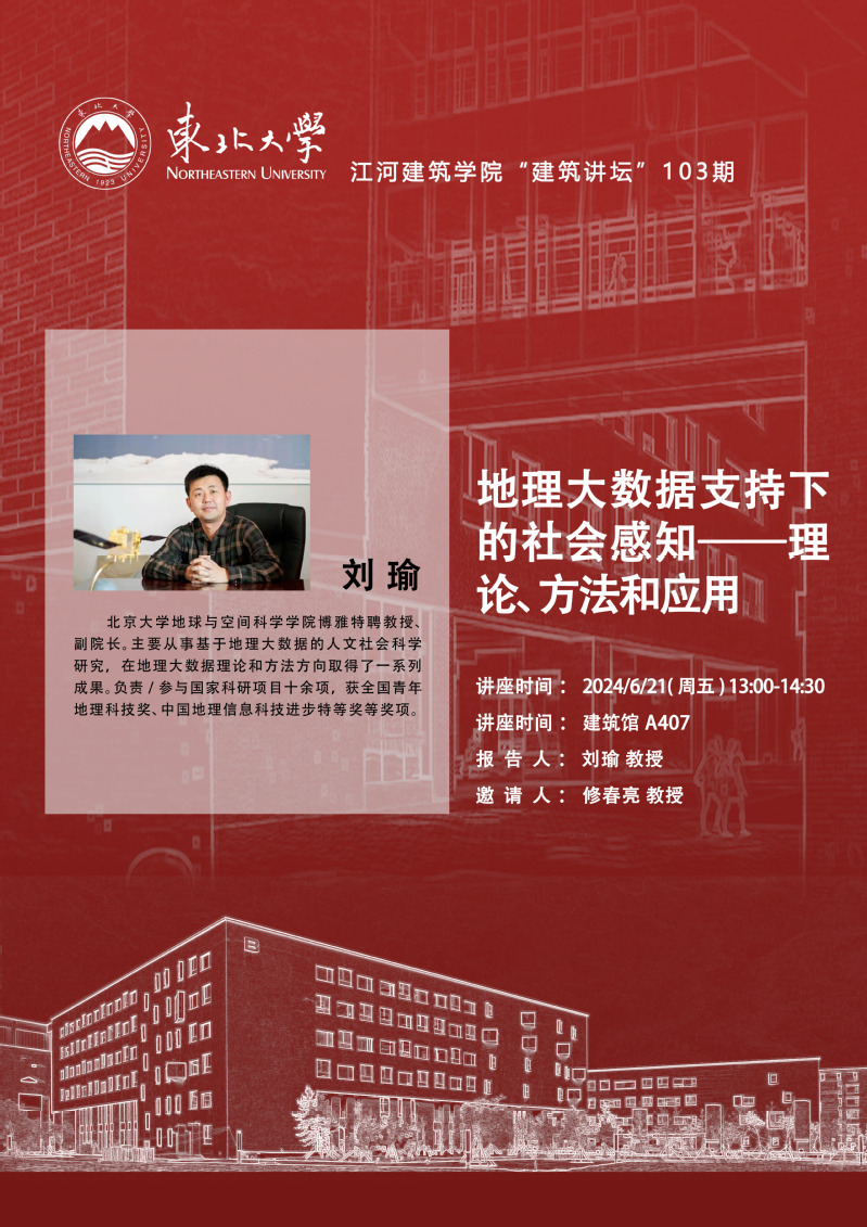 建筑讲坛(103期)预告:地理大数据支持下的社会感知——理论、方法和应用