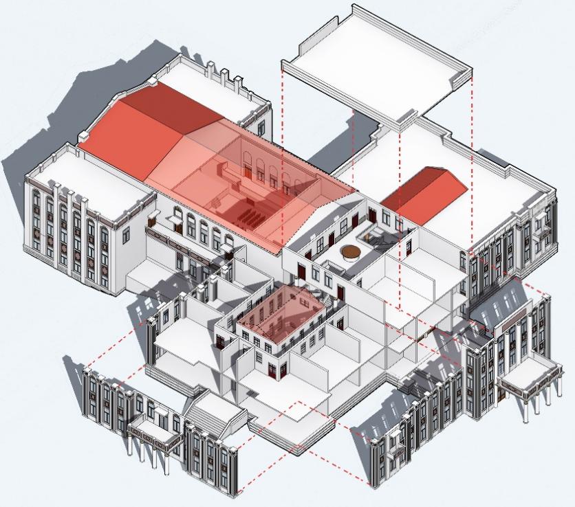 Cutaway perspective view of Jinzhou Railway Cultural Palace