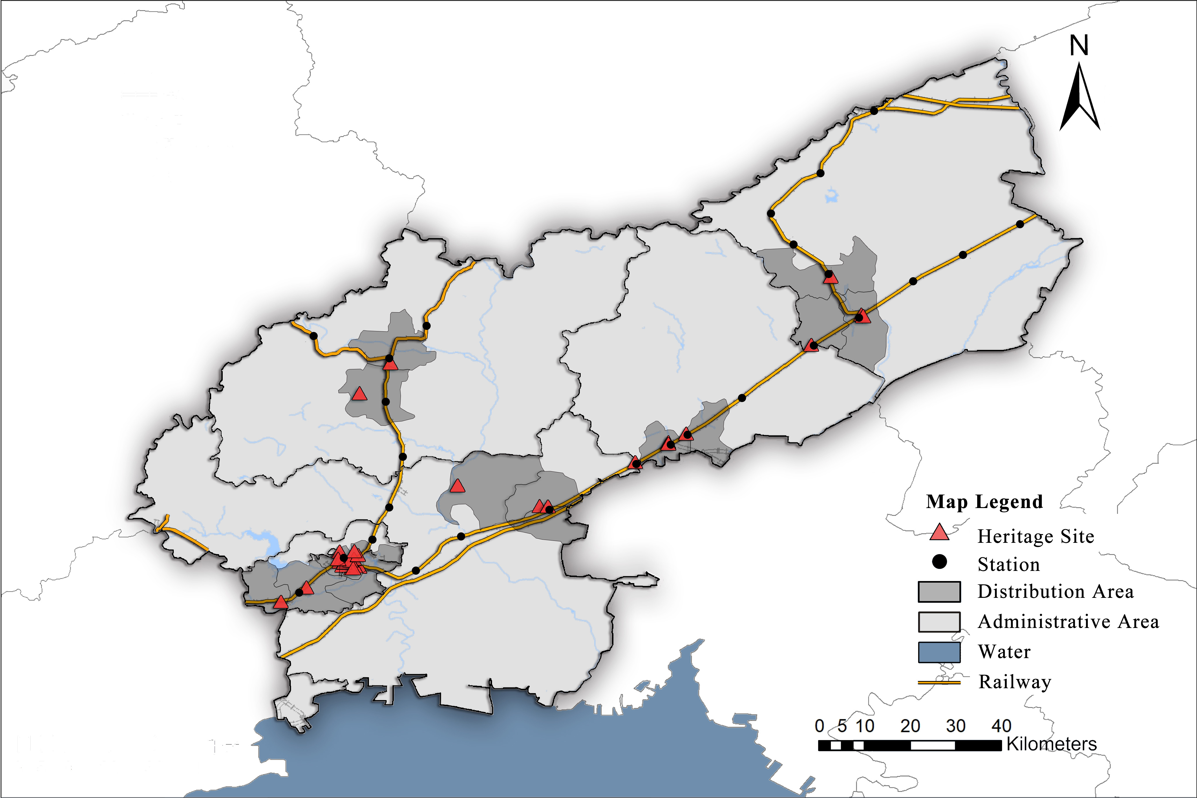 Distribution diagram of integral railway architectural heritage Nuclear density diagram of integral railway architectural heritage