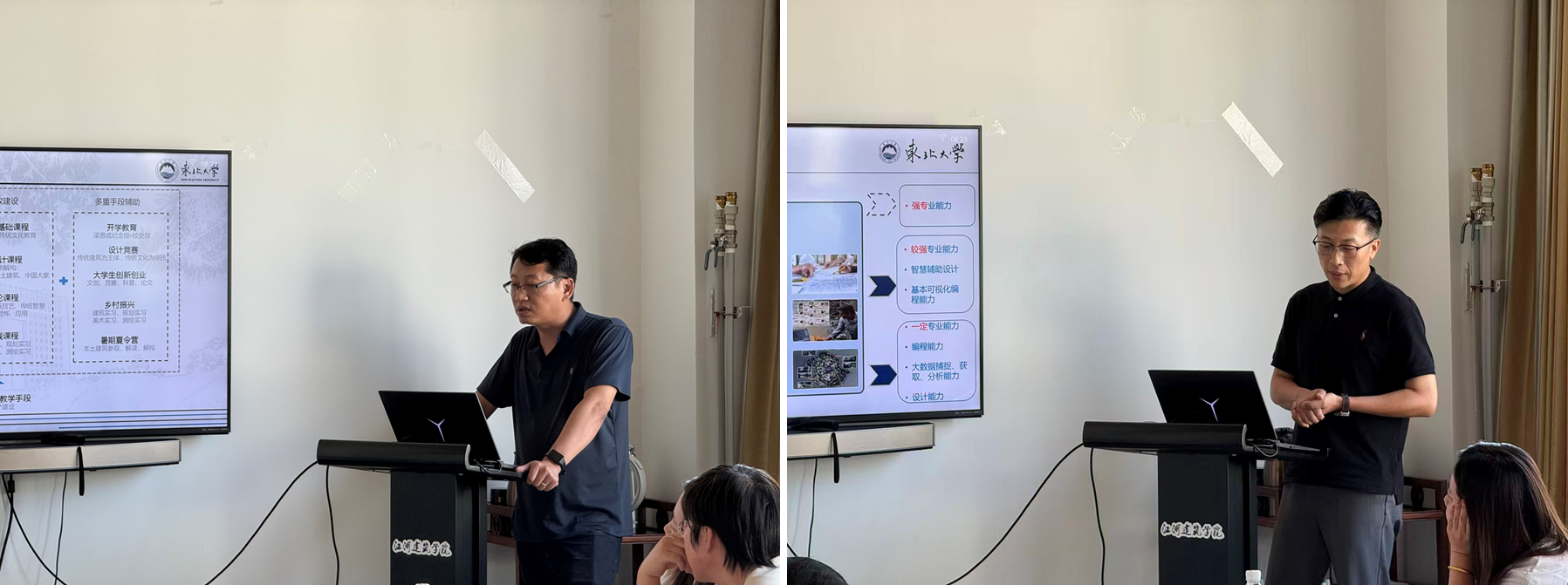 专业办学和培养方案介绍阶段,半岛注册本科教学负责人席天宇针对我院建筑学专业办学特色进行介绍,席老师从国际化人才培养、实践教育基地与建筑师业务能力实训、产学研深度融合人才培养、跨地域-跨高校联合培养人才、课堂教学模式多样化建设和专业竞赛能力提升等“多元”模块进行详细介绍。半岛注册建筑系主任刘哲铭对我院建筑学新版培养方案进行详细解读,刘主任分别从未来专业领军人才培养所需的学科交叉融合、前沿技术跟进、专业全球视野、技术驱动和社会责任等方面,围绕我院新版培养方案进行详细分享。会议讨论阶段,双方就辽宁工程技术大学建筑学专业的办学定位、是否五改四、新方向结合、现有专业调整可能性、培养方案和课程体系修订等方面进行热烈且详细讨论。